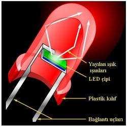 Başlıktan da anlaşılacağı gibi LE İngilizce’ de Light Emitting Diode sözcüklerinin kısaltılmış halidir ve Işık Yayan Diyot anlamına gelir. LED’ler yarı iletken (semiconductor) malzemelerdir. Temel maddeleri ise silikondur. LED’den akım geçtiğinde foton yayarak ışık oluştururlar.